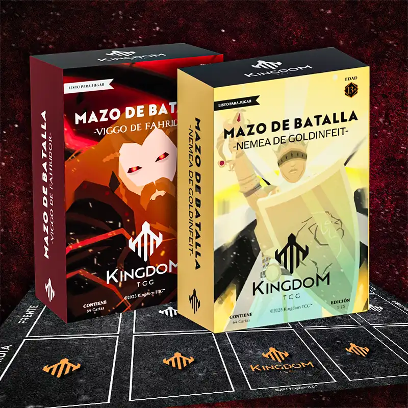 Primero vas a necesitar tu Mazo de Combatientes y tu Mazo de Estrategia, incluídos en cualquiera de los Mazo de Batalla de colección disponibles en nuestra tienda online (solo Argentina) o en los mazos gratuitos para imprimir y recortar en tu casa.