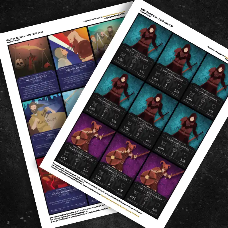 También vas a necesitar un Campo de Batalla para vos (tu oponente debe tener uno también). Podes adquirir uno impreso en nuestra tienda online o descargarlo para imprimir en tu casa de forma gratuita.